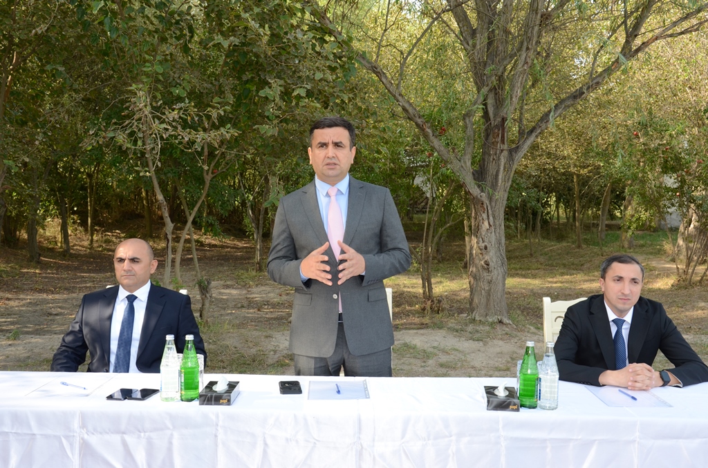 Daha sonra Saatlı Rayon Icra Hakimiyyətinin başçısı Elmir Bağırov çıxış edərək kənd sakinlərini salamlamış, ölkəmizdə sosial-iqtisadi sahədə qazanılan uğurlardan, eləcə də Saatlı rayonunda aparılan tikinti-quruculuq, abadlıq işlərindən, əhalinin sosial problemlərinin həlli istiqamətində həyata keçirilən tədbirlərdən ətraflı məlumat vermişdir.